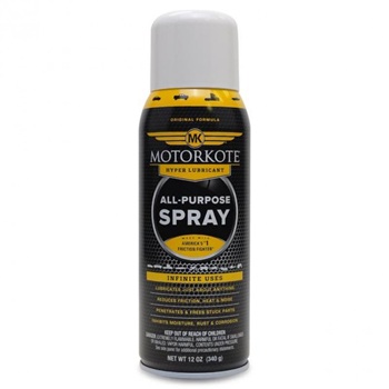 Το Motorkote All Purpose Spray Lubricant είναι ένα πολυχρηστικό σπρέι βασισμένο στο υπερ λιπαντικό Motorkote κάνοντας το μια άριστη λύση για την αποφυγή τριβής, φθοράς, θορύβου, σκουριάς και διάβρωσης σε μεταλλικά μέρη.
